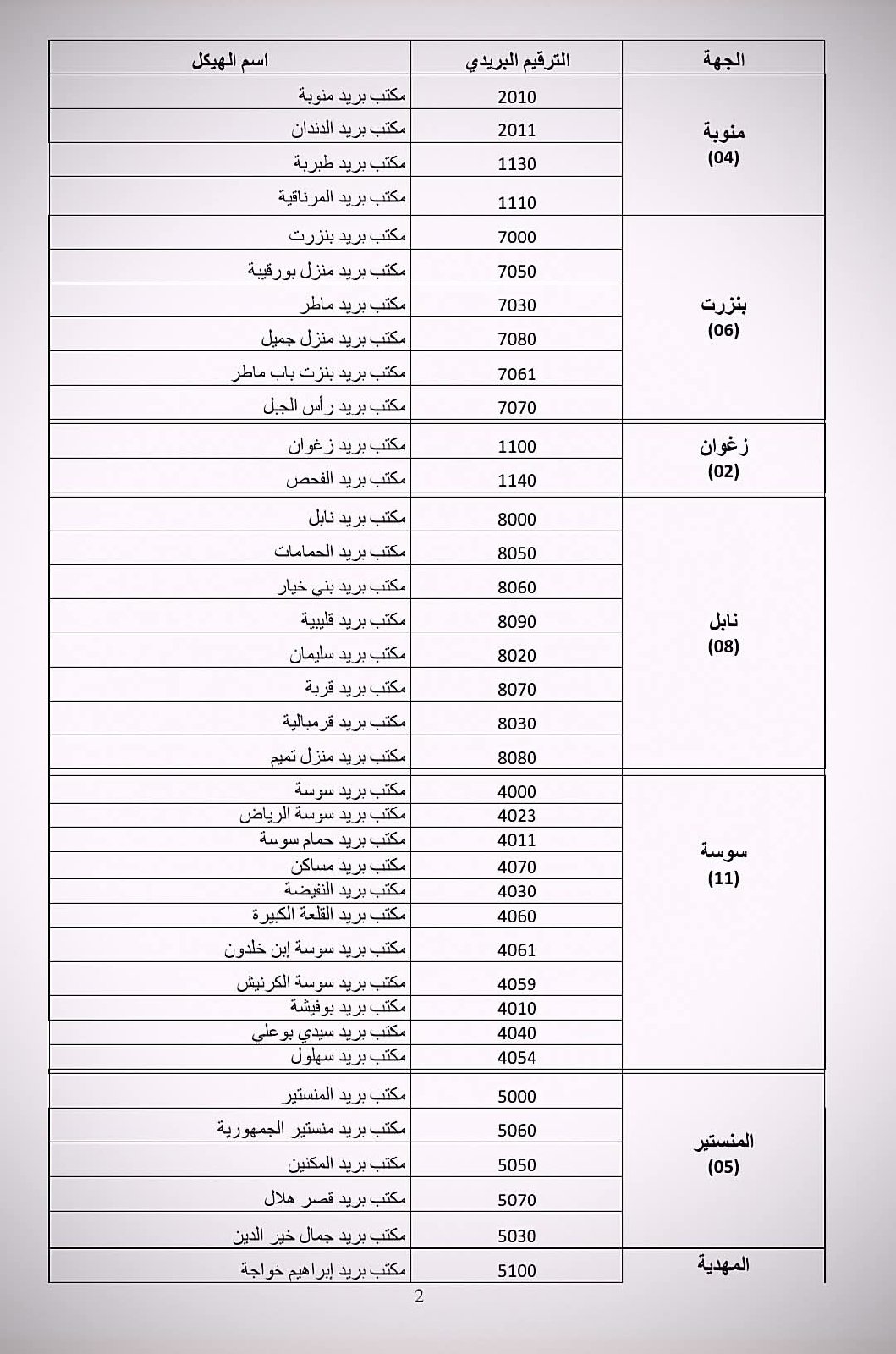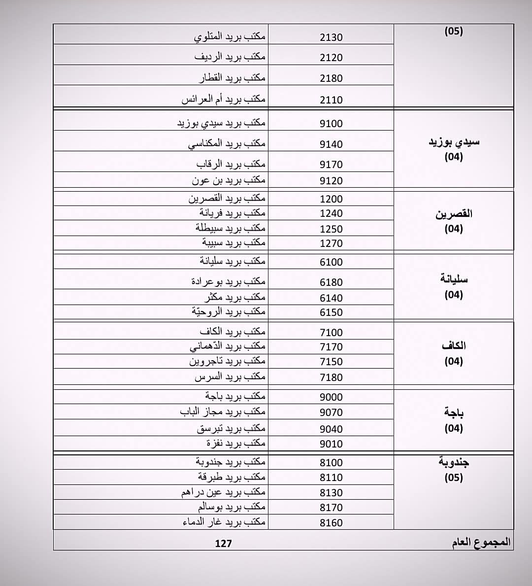 مكاتب البريد المعنية في مختلف الولايات